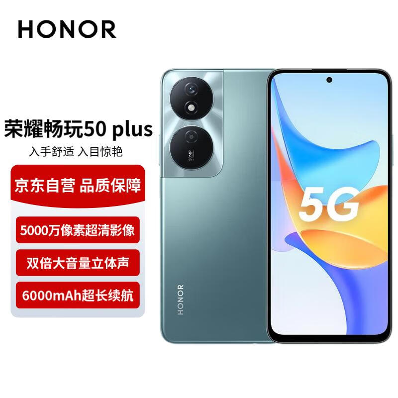 荣耀畅玩50 plus 超长续航 双倍大音量 墨玉青 12G+256GB价格:1099.00元!