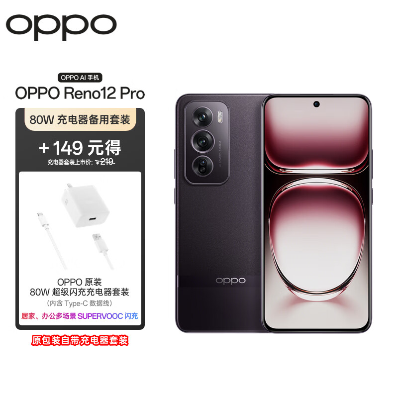OPPO Reno12 Pro 16GB+256GB乌木黑 超美小直屏 天玑9200+星速版旗舰芯手机【80W原装充电器备用套装】价格:3848.00元!