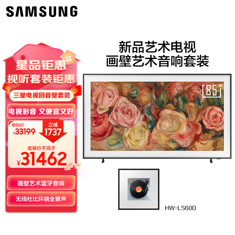 三星(SAMSUNG)85LS03D 85英寸 frame画壁艺术电视 120Hz QLED量子点 QA85LS03DAJXXZ+HW-LS60D/XZ套装价格:31462.10元!