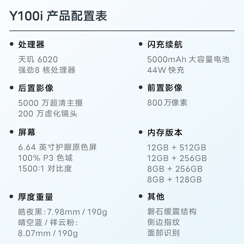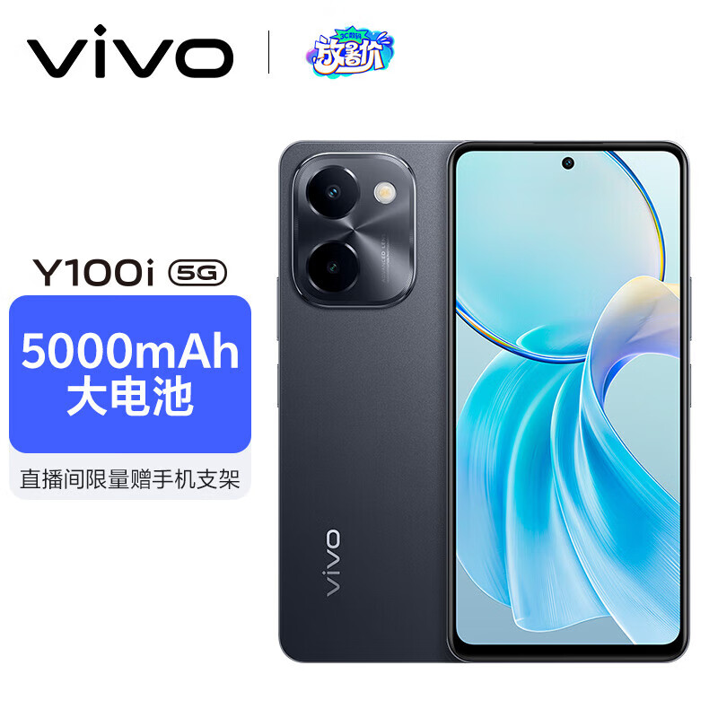 vivo Y100i 12GB+512GB 皓夜黑 灵动越级外观 5000mAh电池 后置5000万超清主摄 5G 拍照 手机价格:1599.00元!