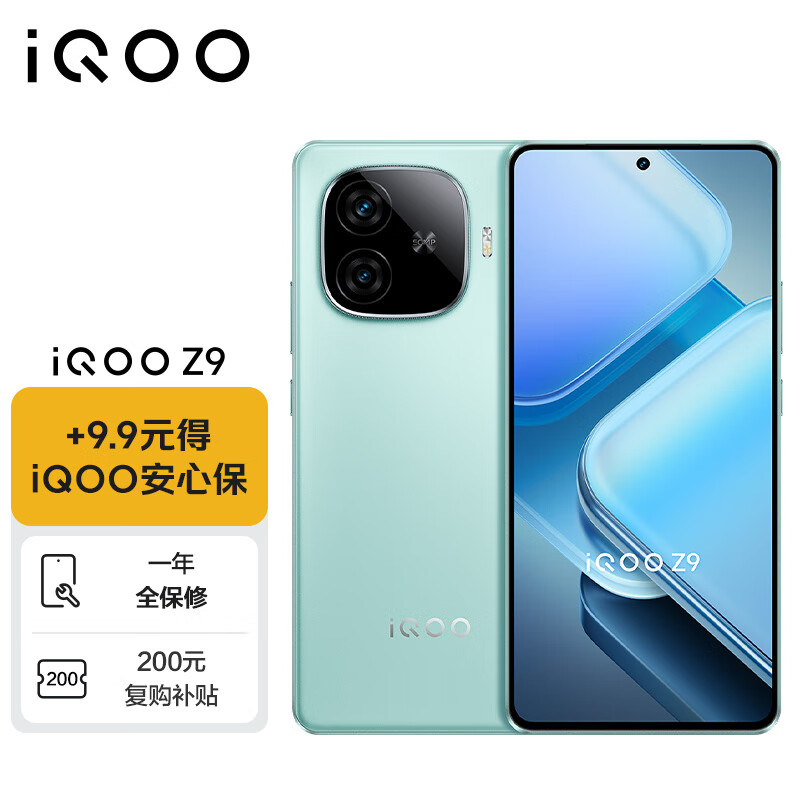vivo 【全保维修套装】iQOO Z9 12GB+256GB 山野青 6000mAh 超薄蓝海电池144Hz 防频闪护眼屏电竞手机价格:1808.90元!