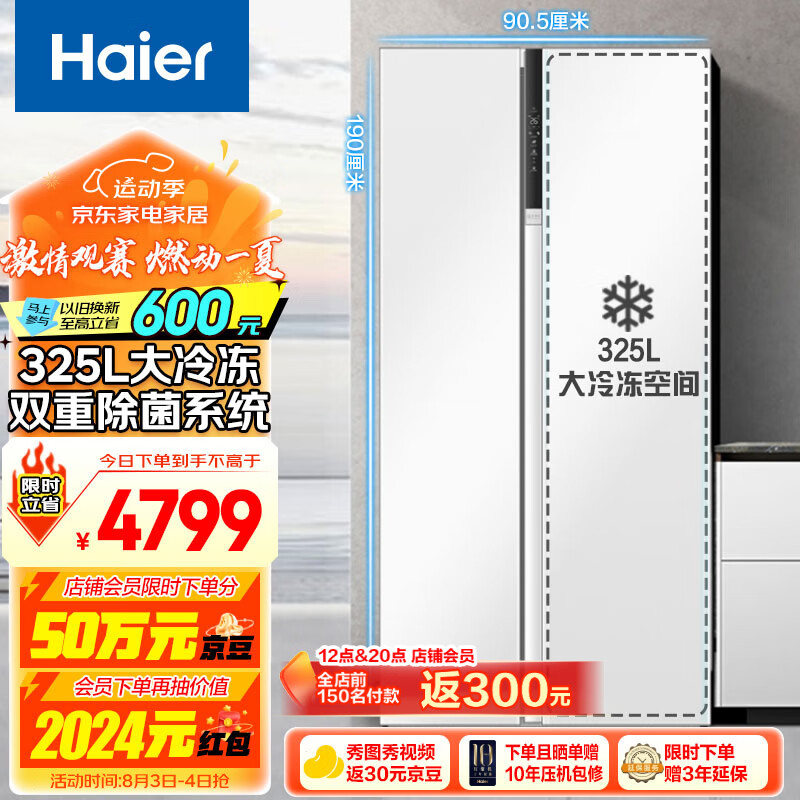 海尔(Haier)621升巨能冻对开门双开门电冰箱家用一级能效变频超大冷冻容量超薄风冷无霜BCD-621WLHSS95W9U1价格:5799.00元!