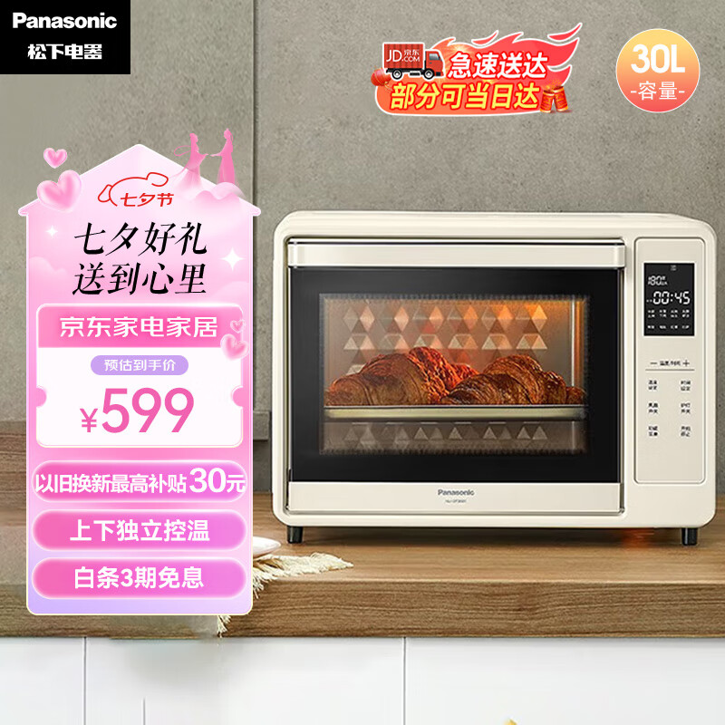 松下(Panasonic)佛罗伦萨杏 30L大容量 电烤箱 聚会轰趴 上下独立控温 两段下拉门 NU-DT300YXPE价格:599.00元!