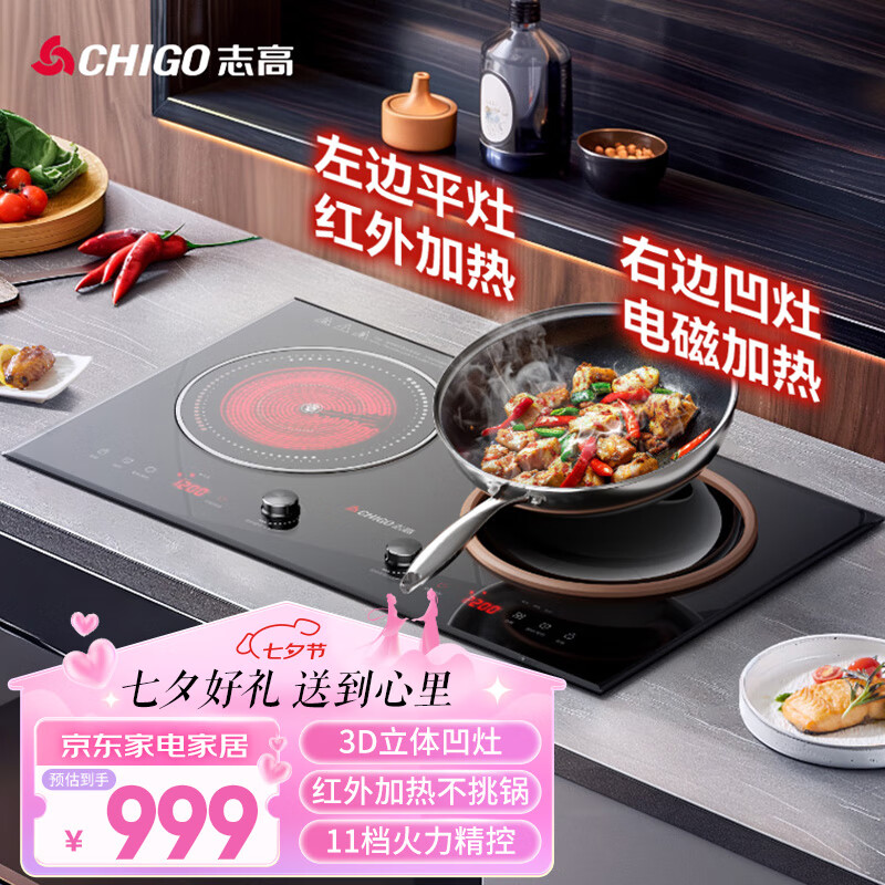 志高(CHIGO)电磁炉电陶炉双灶嵌入式 大功率家用爆炒电磁炉 凹面3500W多功能双控定时左平右凹 35A6 Pro价格:1049.00元!