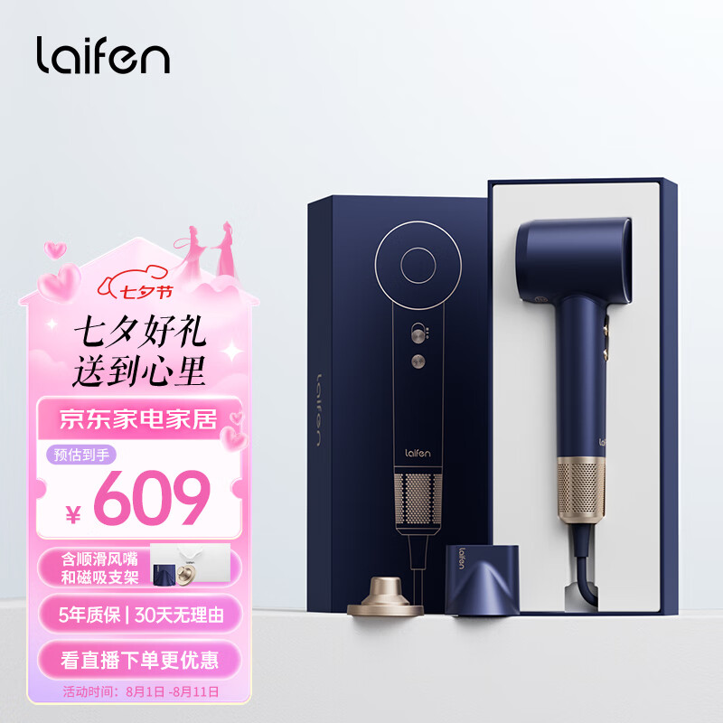 徕芬Laifen高速吹风机家用 大功率不伤发低噪音风筒 莱芬大风力速干电吹风 赠男士女士七夕情人节礼物 蓝金礼盒款价格:950.00元!