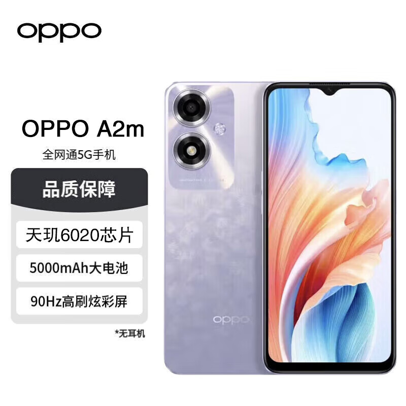 OPPO A2m 天玑6020芯片 5000mAh四年耐用大电池 300%超级音量 飞霜紫 12GB+256GB OPPO手机价格:1399.00元!