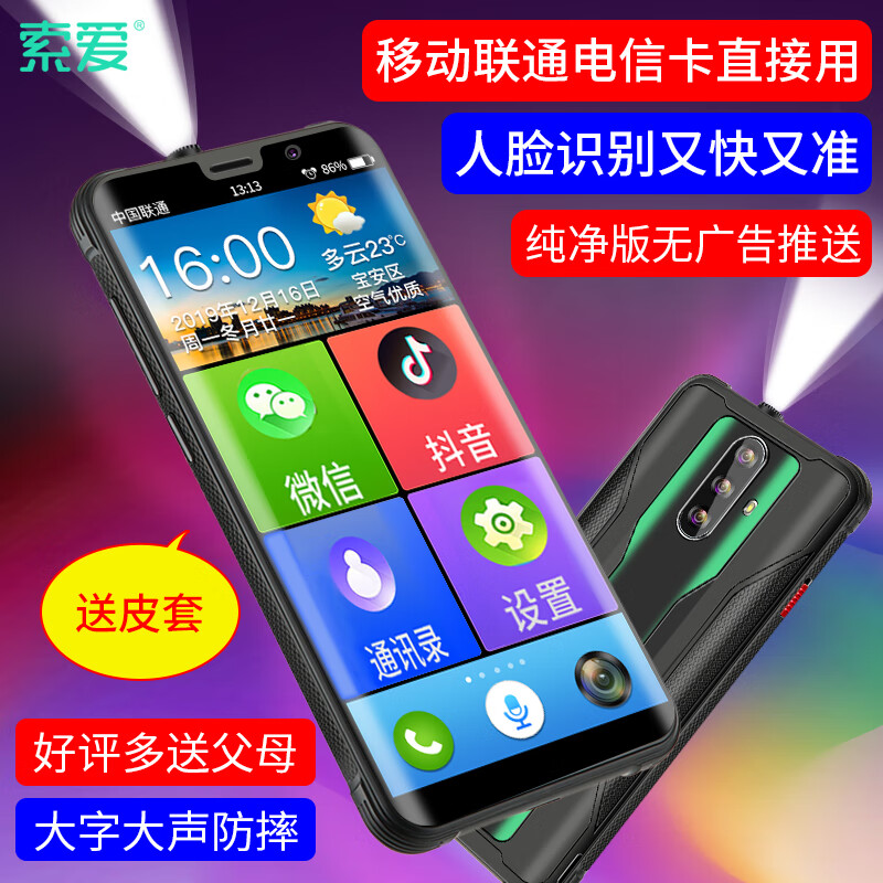 索爱(soaiy)S20A 16GB通4G智能老年人手机双卡双待大字大声屏 便宜备用机 幻夜黑价格:399.00元!