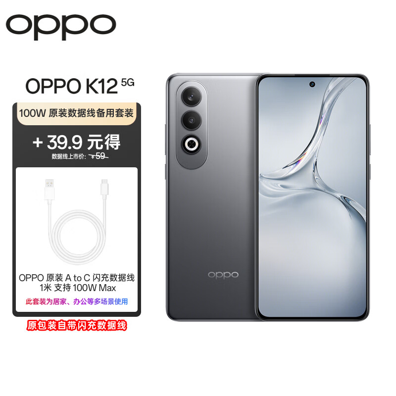 OPPO K12 5G 100W闪充 5500mAh超长续航 拍照游戏 AI手机 12GB+256GB 星夜【100W原装数据线备用套装】价格:2138.90元!