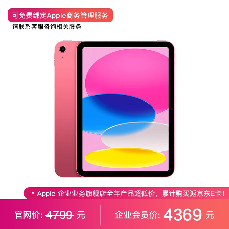 Apple iPad 10.9英寸平板电脑2022年款(256GB WLAN版/A14芯片/1200万像素/iPadOS MPQC3CH/A)粉色*企业专享价格:4799.00元!