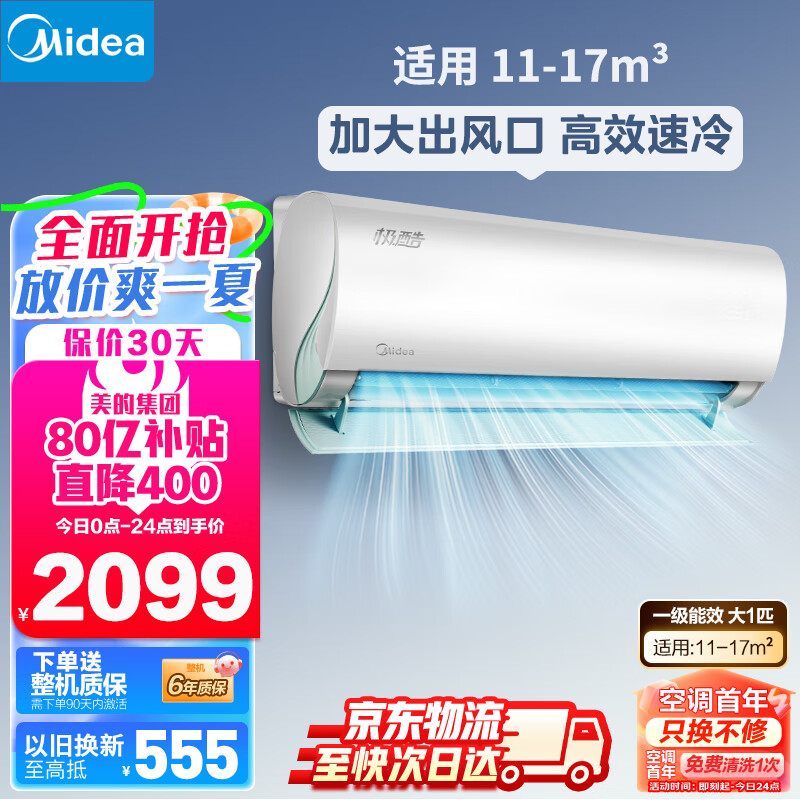 美的(Midea)空调挂机大1匹 新一级能效变频冷暖卧室家用壁挂大风口空调极酷省电挂机 以旧换新 VHA价格:2099.00元!