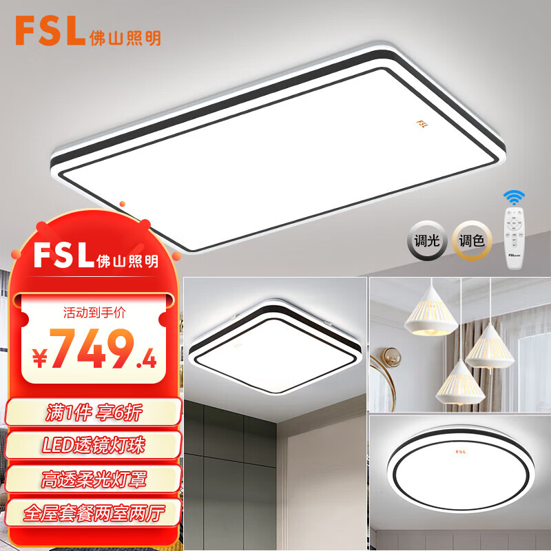 FSL佛山照明灯具套餐LED吸顶灯智能客厅卧室灯遥控调色两室两厅54059价格:1249.00元!