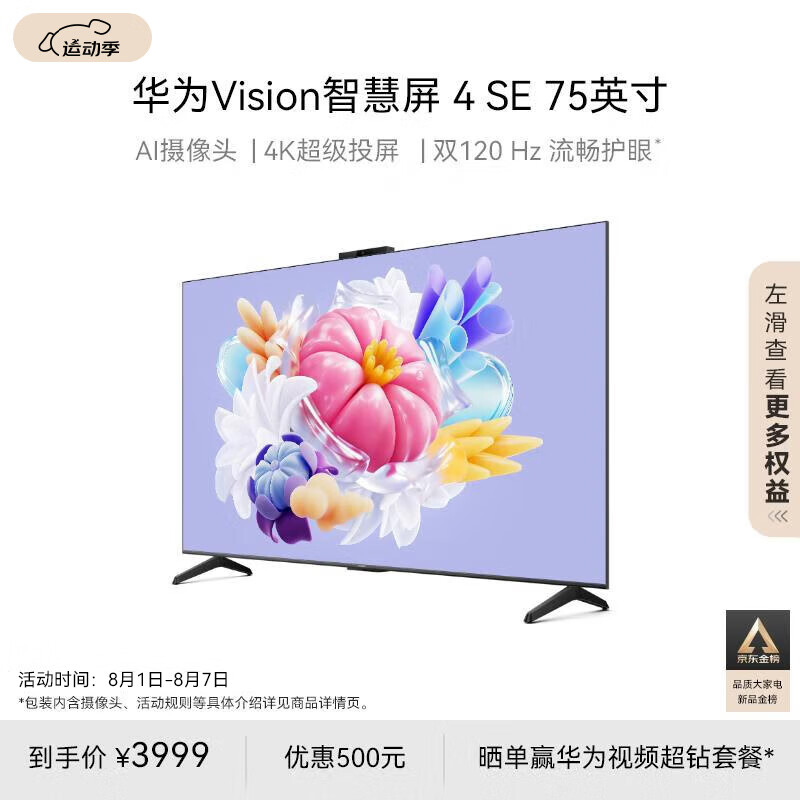 华为Vision智慧屏 4 SE 75英寸 Pura 70投屏好搭档 AI摄像头超高清智能液晶超薄电视机HD75KUNL价格:3999.00元!