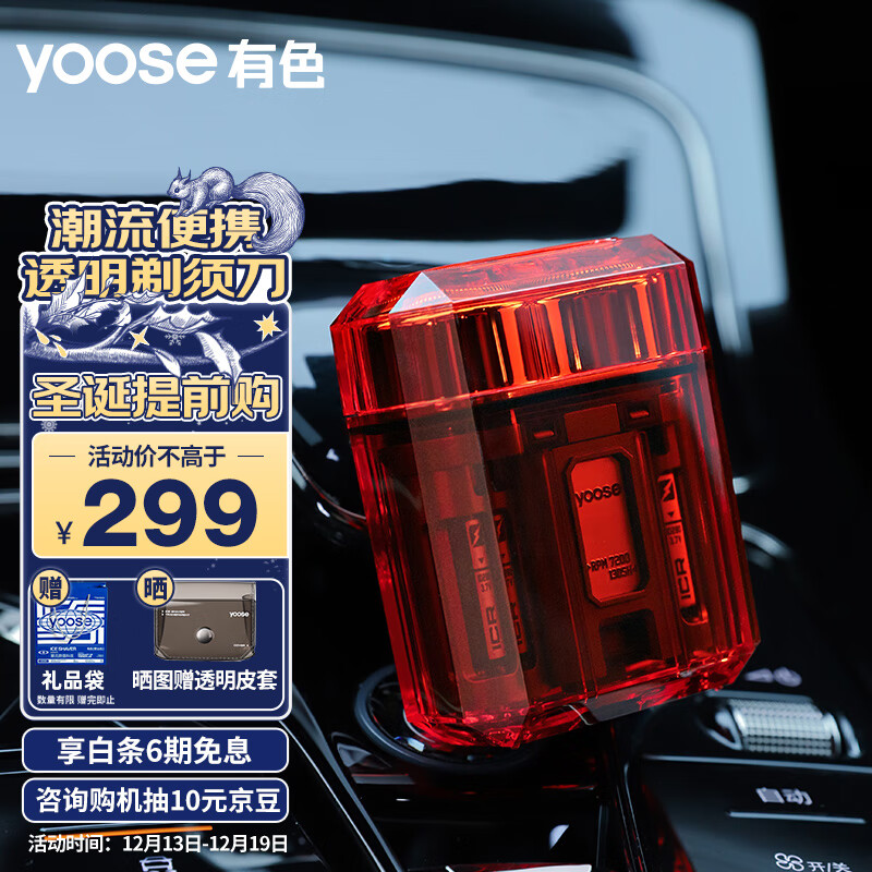 有色(yoose)男士电动剃须刀 潮流冰感便携 全身防水 送男友节日礼物 胡须刀礼盒 ICE 透明红价格:399.00元!