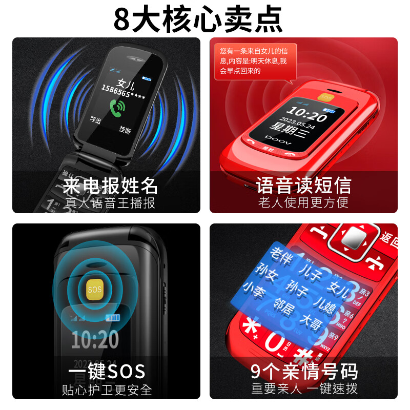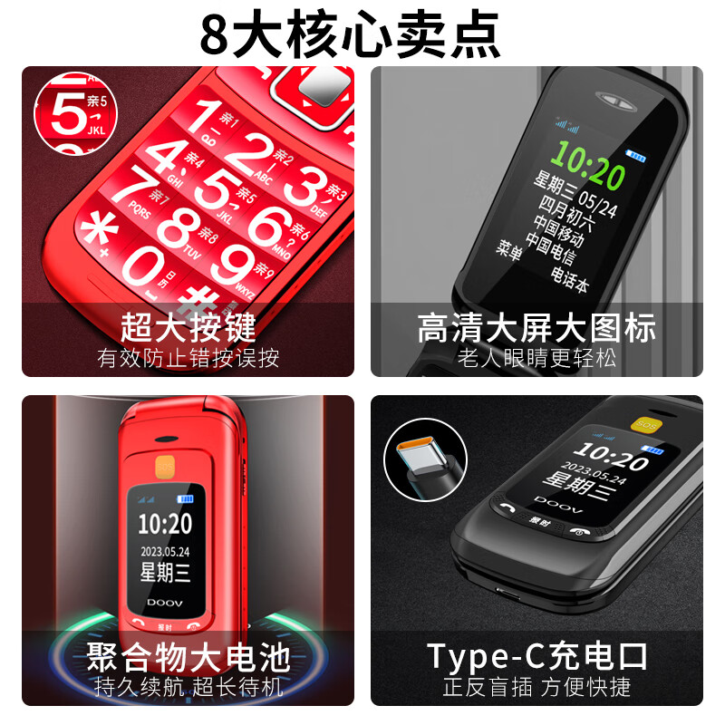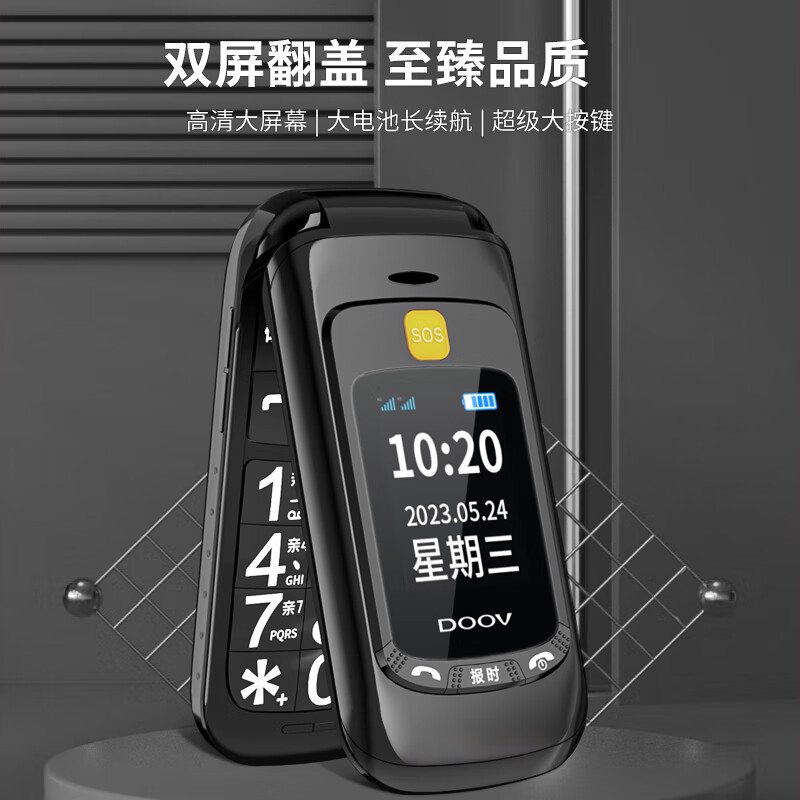 朵唯(DOOV)F99儒雅黑 4G通翻盖老人手机 双屏双卡双待超长待机大字大声音大按键老年机 学生备用功能机价格:168.00元!