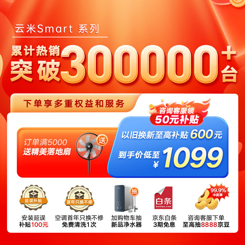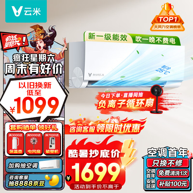 云米(VIOMI)空调1.5匹新一级能效挂机客厅卧室挂式家用空调冷暖变频KFRd-35GW/Y3PQ7-A1以旧换新价格:1899.00元!