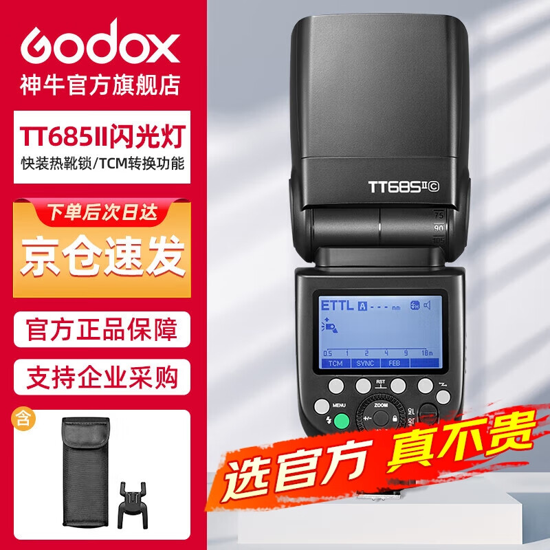 神牛TT685II二代机顶闪光灯单反微单热靴闪光灯高速同步TTL外拍摄影灯户外人像模特补光摄影佳能版价格:688.00元!