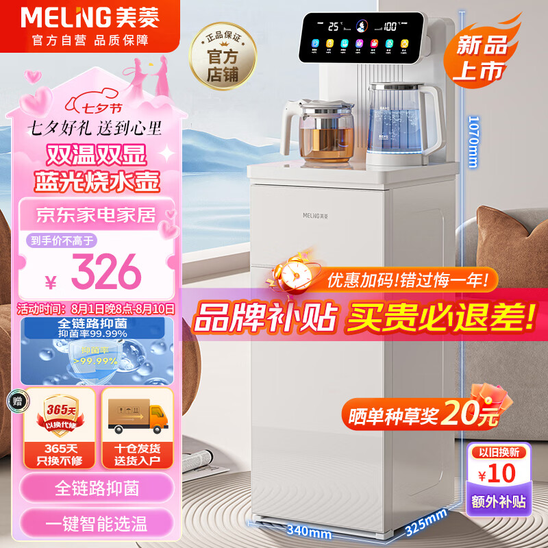美菱(MeiLing)茶吧机 家用饮水机家用高端客厅用智能遥控下置水桶【彩屏双显】一键选温全自动-温热型MY-C953价格:349.00元!