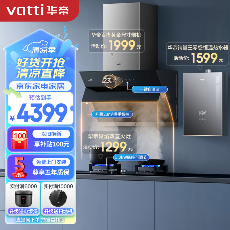 华帝(VATTI)16L水伺服恒温燃热23风量侧吸油烟机5.0kW燃气灶多件套装i11170+72B+152-16(天然气)价格:4399.00元!