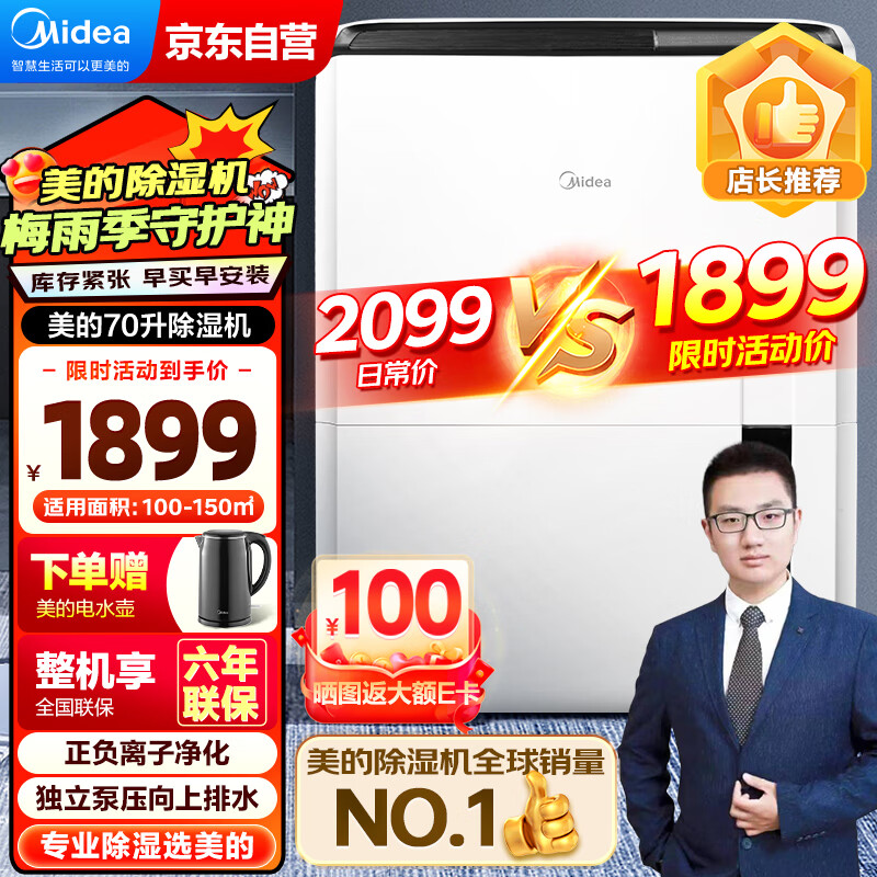 美的(Midea)除湿机/抽湿机 除湿量70升/天 大功率净化除湿 工厂仓库地下室水泵排水工业吸湿器CF70BD/N8-DL1价格:1899.00元!