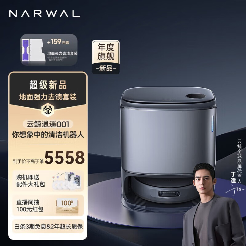 云鲸扫地机器人逍遥001水箱版+地面去渍套装价格:5558.00元!