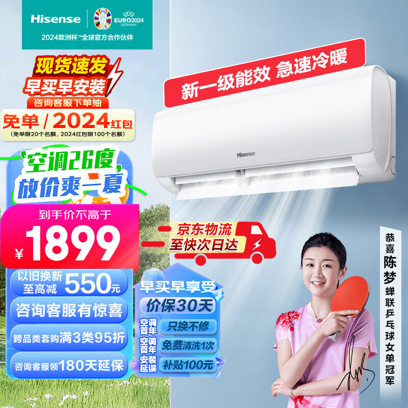 海信(Hisense)1.5匹 速冷热 陈梦同款新一级能效变频冷暖 高温自清洁大风量壁挂式卧室空调挂机KFR-34GW/E270-X1价格:1899.00元!