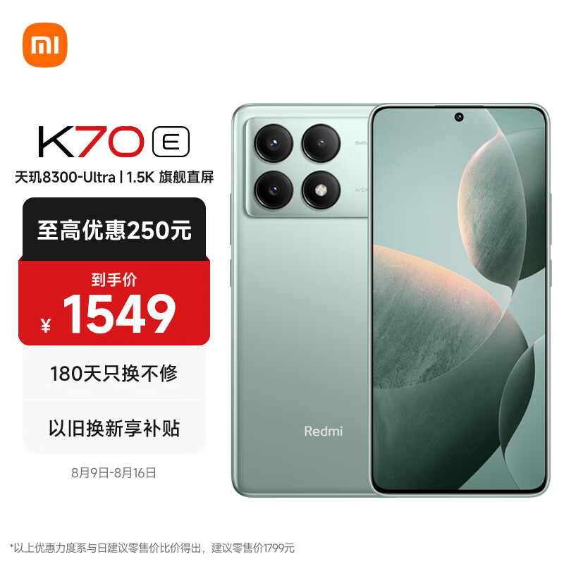 小米Redmi K70E 天玑8300-Ultra小米澎湃OS 12GB+256GB影青 AI功能 红米5G手机价格:1549.00元!