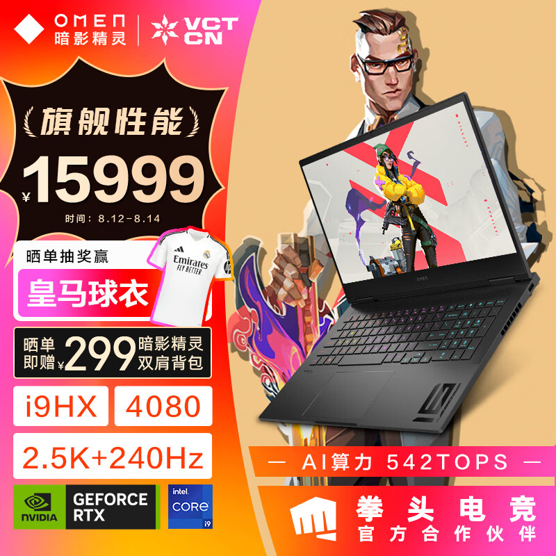 惠普(HP)暗影精灵10 16.1英寸游戏本笔记本电脑(Intel14代酷睿i9-14900HX RTX4080 32G 1TBSSD QHD 240Hz)价格:15999.00元!