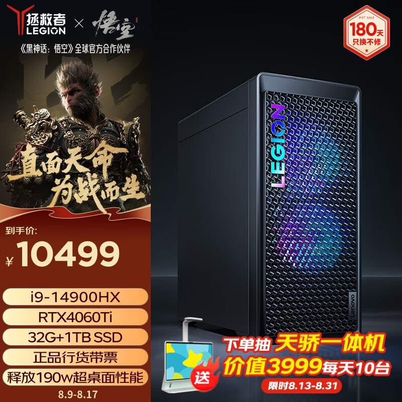 联想拯救者刃7000K游戏主机官方合作台式电脑14代i9-14900HX RTX4060Ti 32G DDR5价格:10499.00元!