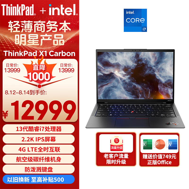 ThinkPad X1 Carbon 英特尔Evo 联想14英寸轻薄笔记本电脑 13代酷睿i7-1360P 32G 512G 4G 2.2K(05CD)价格:12999.00元!