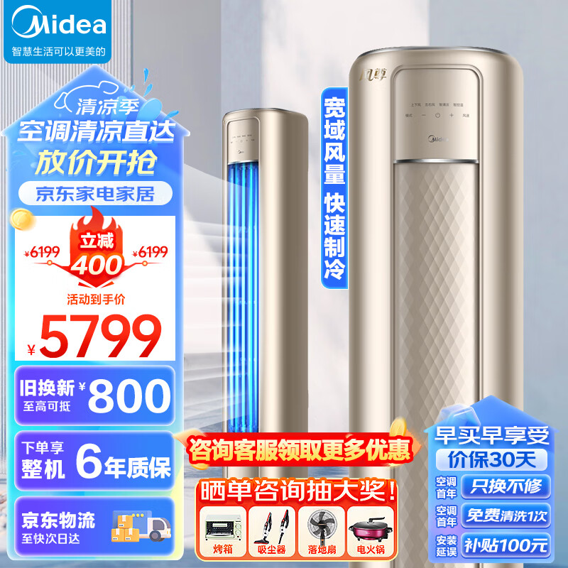 美的(Midea)风尊 2匹 新一级能效变频冷暖 超大出风口 智能除菌 家用客厅立式空调柜机 KFR-51LW/N8MZB1价格:5799.00元!