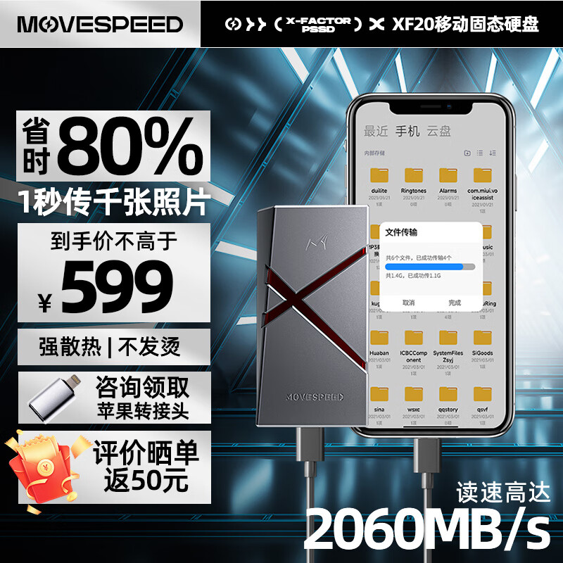 移速(MOVE SPEED)1TB 移动固态硬盘 (PSSD) 移速X元素 ssd移动硬盘 支持手机直连 高速颗粒NVME读数 高达2060MB/S价格:699.00元!