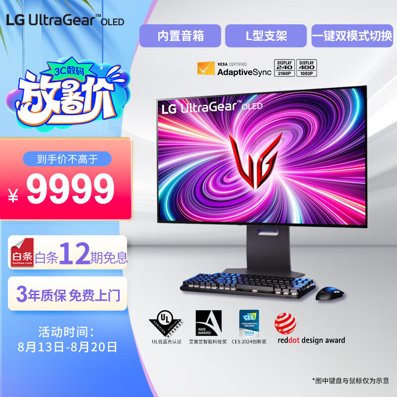 LG 32GS95UE 31.5英寸4k OLED双模式FHD 480Hz/UHD 240Hz 高刷 0.03ms 屏幕自发声电竞游戏显示器价格:9999.00元!