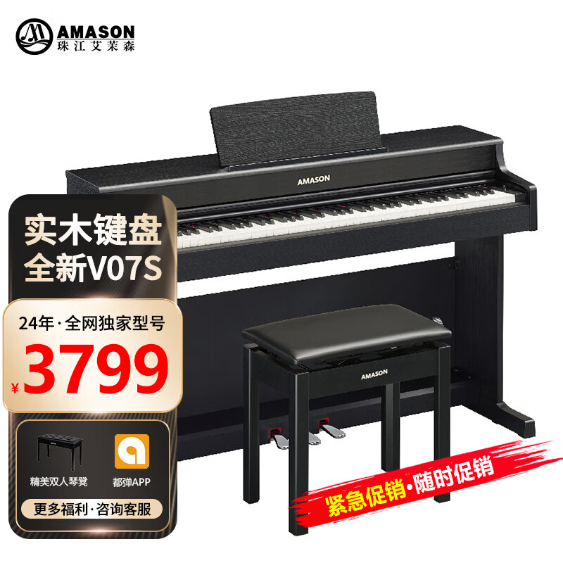 艾茉森珠江钢琴 88键重锤电钢琴成人儿童数码考级电子钢琴V07S价格:5699.00元!