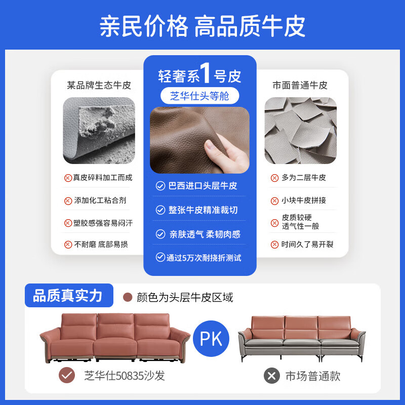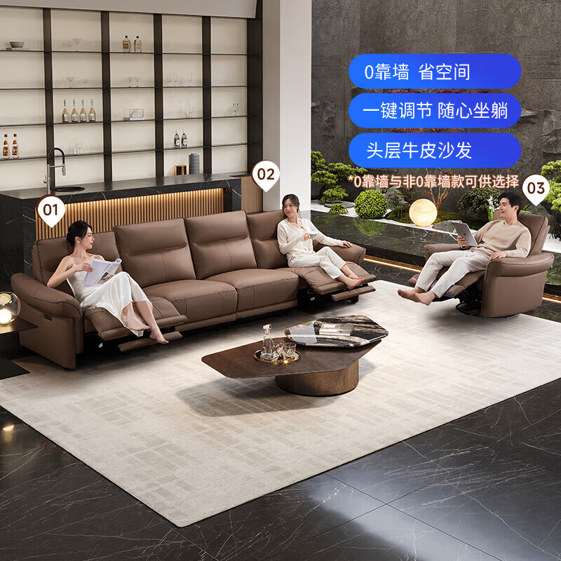 芝华仕(CHEERS)头等舱复古极简真皮功能沙发客厅零靠墙家具芝华士50835棕小四价格:7299.00元!