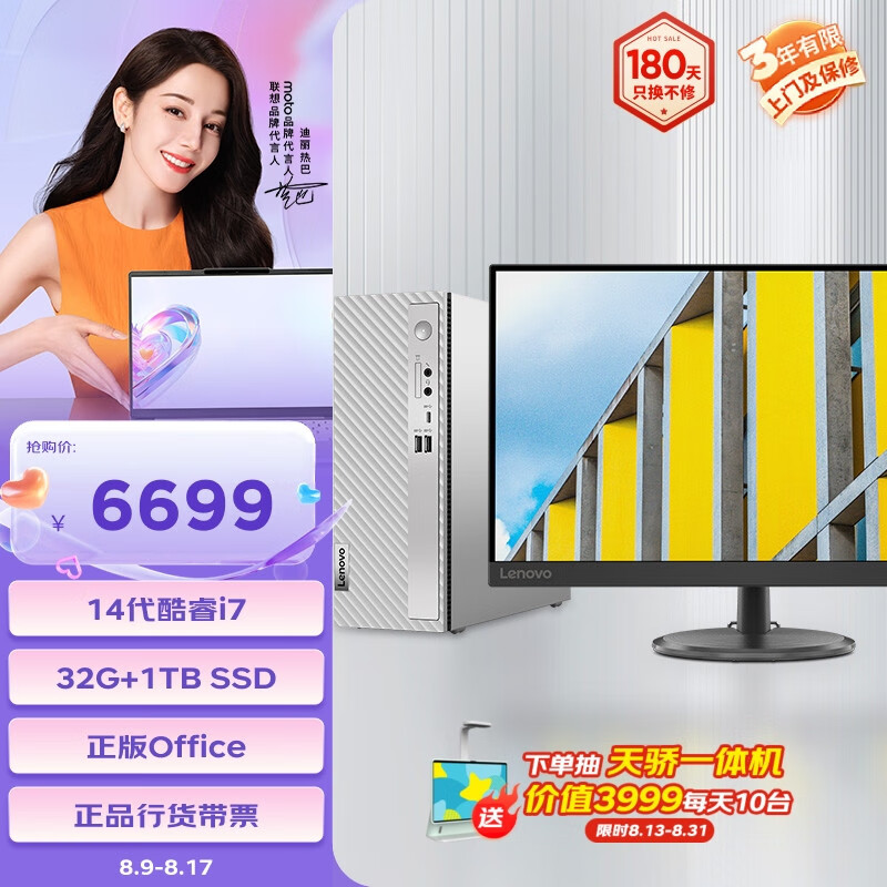 联想(Lenovo)天逸510S 2024商务台式机电脑主机(酷睿14代i7-14700 32G 1TB SSD win11)27英寸显示器价格:6699.00元!