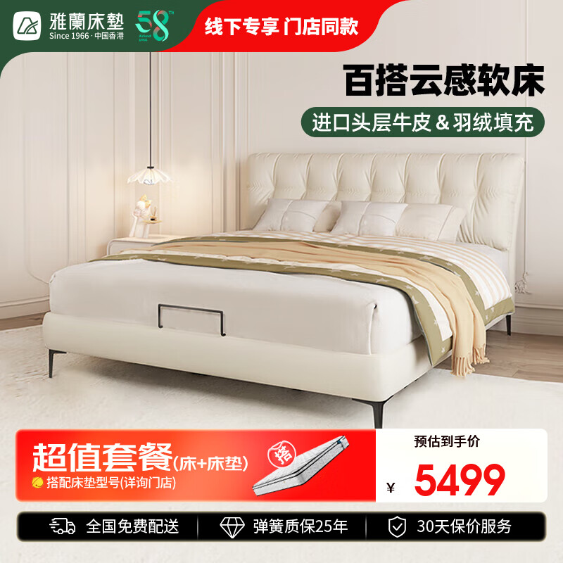 雅兰(AIRLAND)雅兰【超体专享】纤云+流光白 1.8*2米 套餐【搭配床垫详询门店】价格:6499.00元!