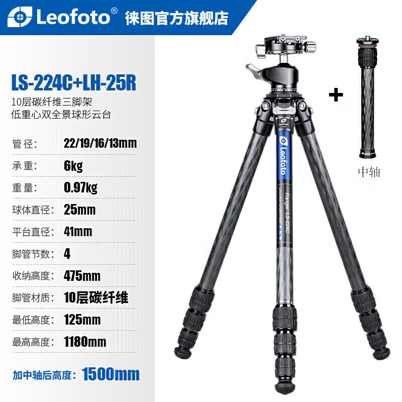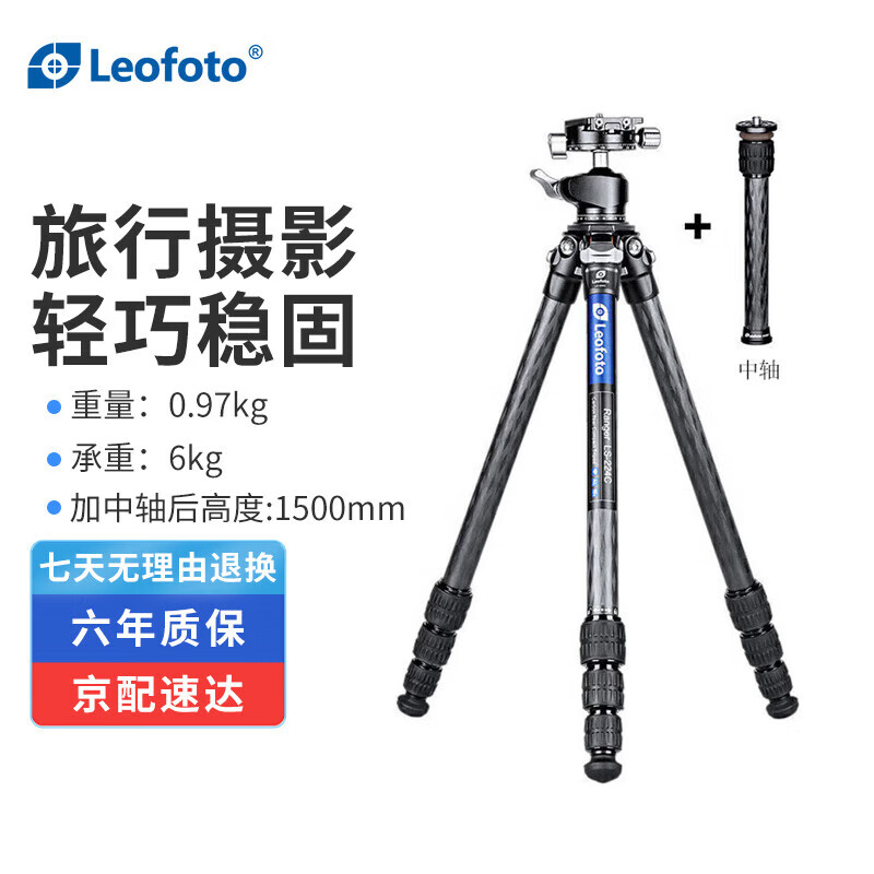 徕图(Leofoto) 三脚架 碳纤维手机支架佳能尼康索尼相机镜头摄影摄像三脚架云台套装 LS-224C+LH-25R+DC-222C价格:1019.00元!
