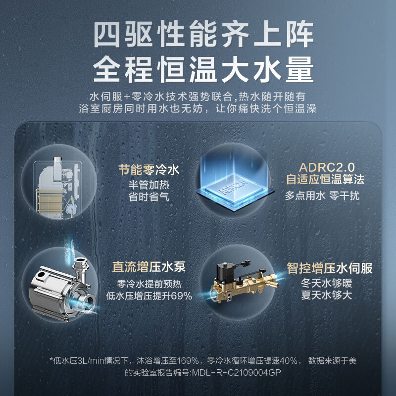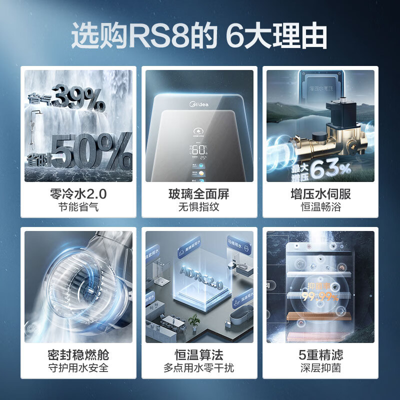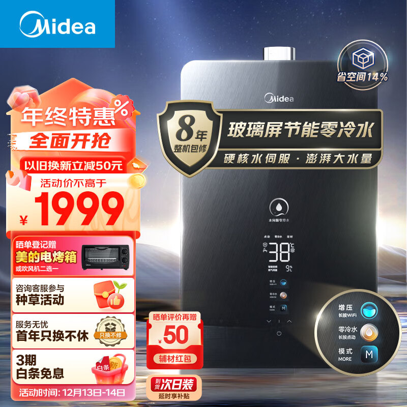 美的(Midea)16升燃气热水器 天然气 水伺服恒温 双增压零冷水 半管节能 多重防冻 多重安防 彩晶屏 JSQ30-RS8价格:1999.00元!