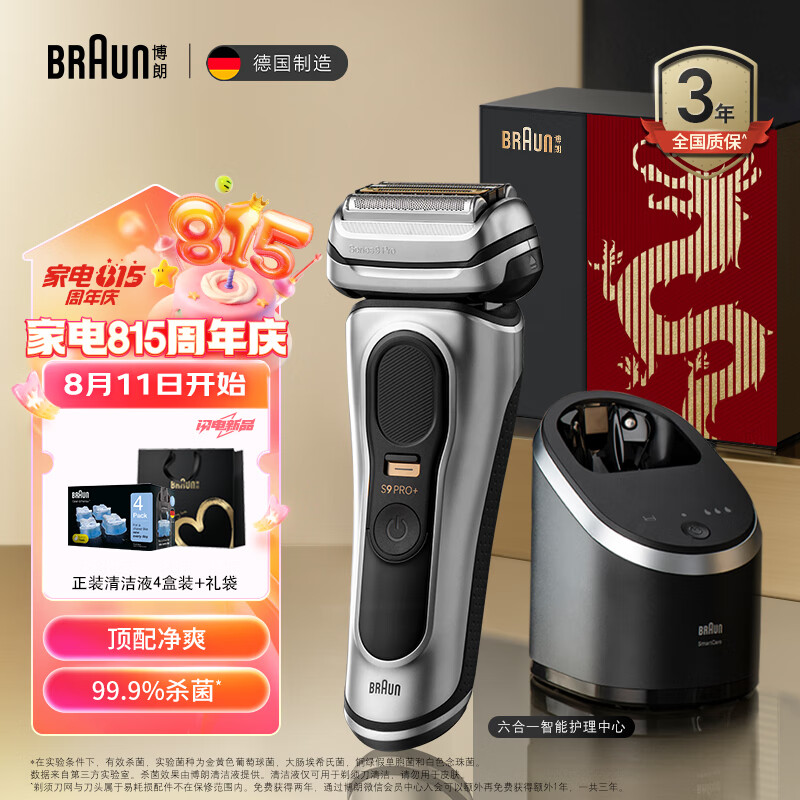 博朗(BRAUN)9系pro+升级版清洁护理中心电动剃须刀整机德国进口往复式礼盒款送男友生日礼物价格:2499.00元!