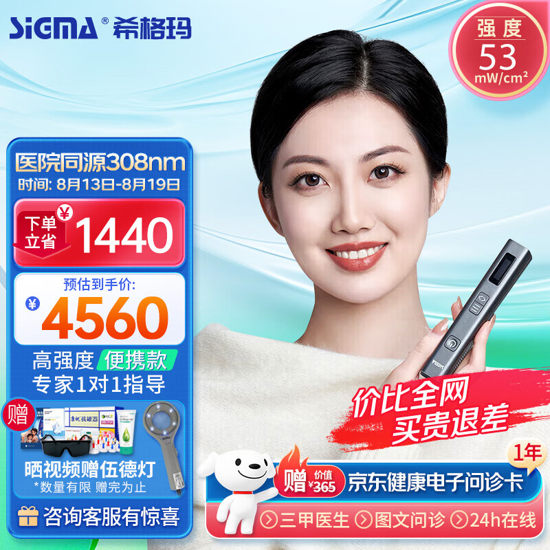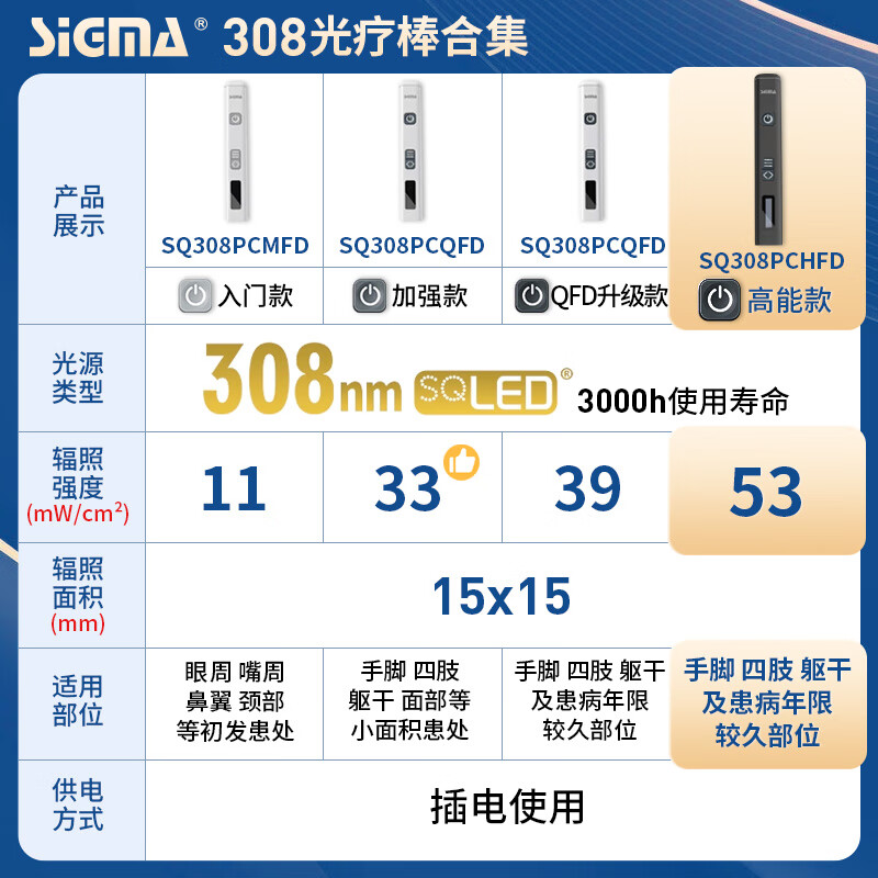 希格玛(SIGMA)白癜风治疗仪308光疗仪银屑病理疗仪适合小面积疑难部位SQ308PCHFD【53mW高强度】价格:6000.00元!