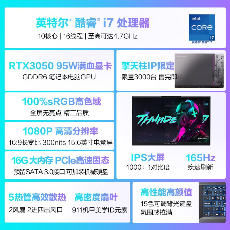 雷神(ThundeRobot)911MT黑武士15.6英寸独显轻薄游戏本骨灰玩家级剪辑AI设计师编程移动工作站笔记本电脑变形金刚IP i73050已售罄价格:7799.00元!