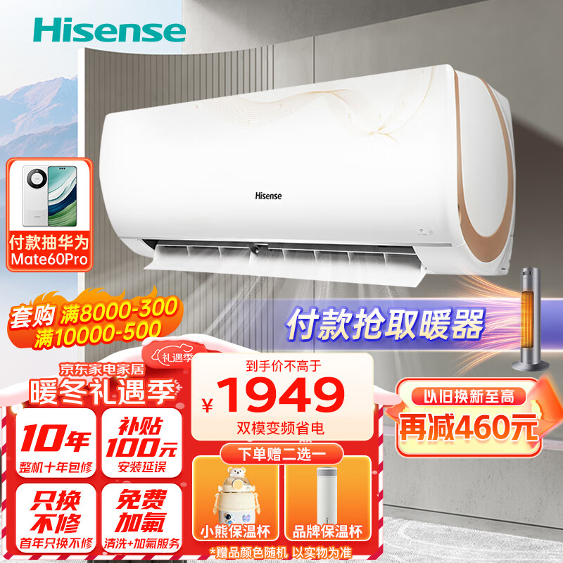 海信空调1.5匹挂机低噪节电APP智能高温烘干自清洁极速冷暖卧室壁挂空调KFR-35GW/EF19A3以旧换新价格:1949.00元!