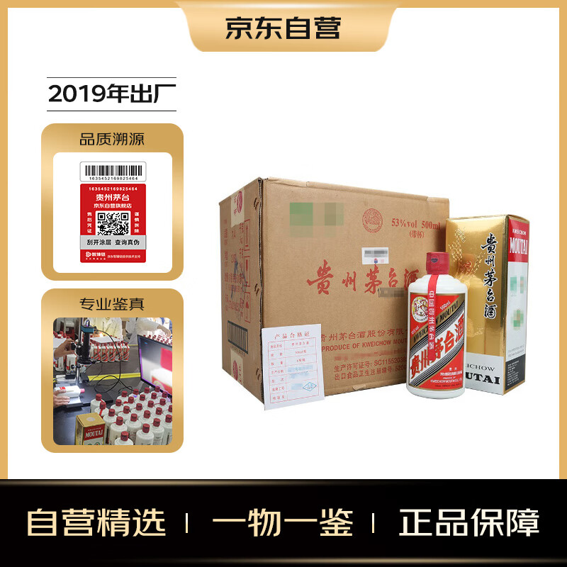 茅台(MOUTAI)2019年 飞天 酱香型白酒 53度 500ml*6 整箱装【名酒鉴真】价格:18894.00元!