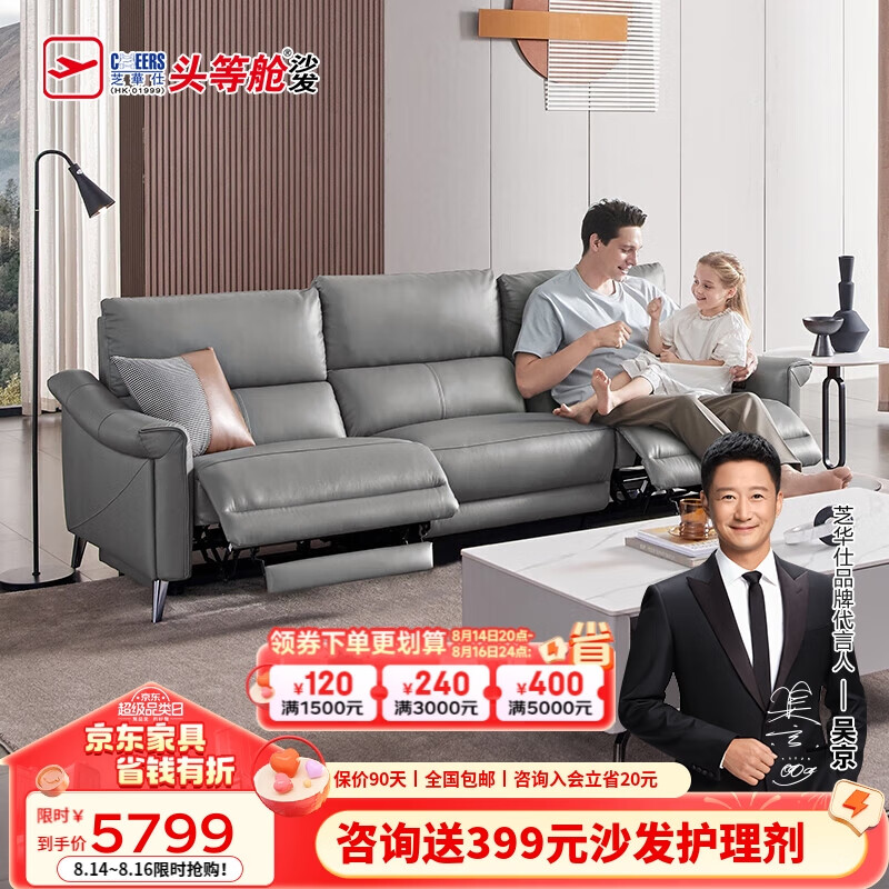 芝华仕(CHEERS)头等舱零靠墙现代简约真皮电动功能沙发客厅芝华士50611B灰大三A价格:5799.00元!