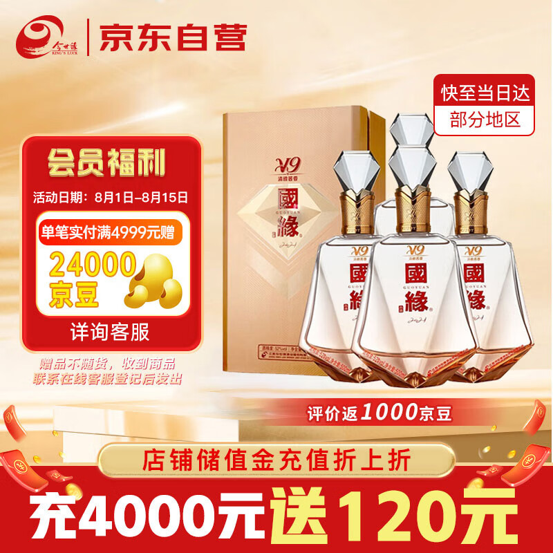 今世缘 国缘V9商务版 清雅酱香型白酒 52度 500ml*4瓶 整箱装 国缘V系价格:5436.00元!