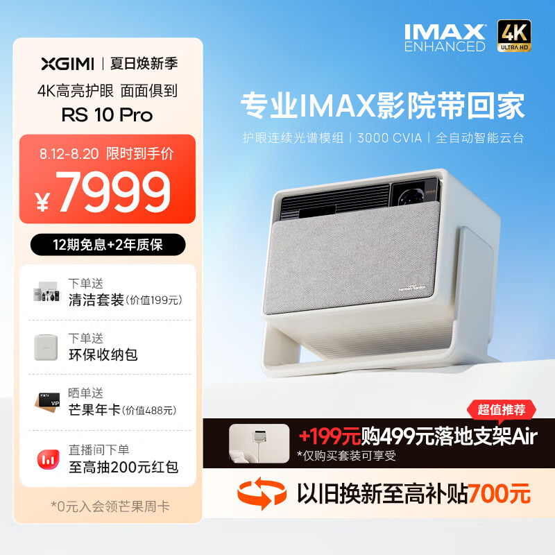 极米RS 10 Pro 4K家用激光投影仪 新一代三色激光技术 全自动云台 智能投影 家庭电视影院 3000CVIA价格:7999.00元!