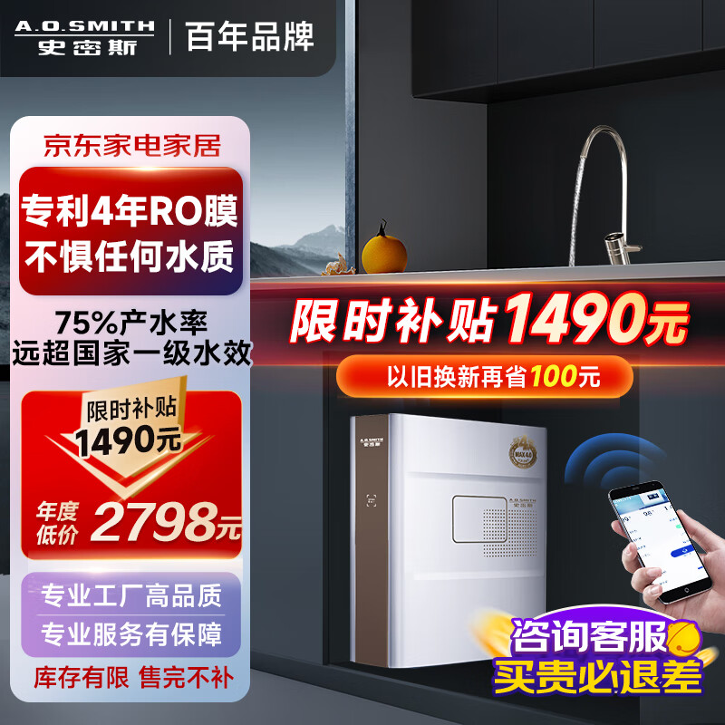 ʷ??˹??A.O.SMITH????ˮ??????ר??4??ROĤ??????о3:1??ˮЧ??ʡǮ????С?????ܳ???ʽֱ????ˮ??DK1600?۸???2798.00Ԫ??