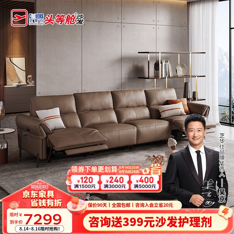 芝华仕(CHEERS)头等舱零靠墙意式轻奢真皮功能沙发客厅芝华士50795升级四棕A价格:7299.00元!