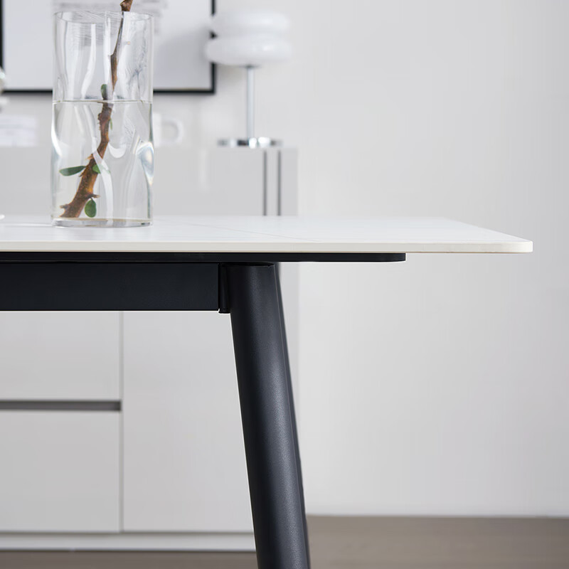 1、餐桌总体上不错,安装方便,使用感觉不错,岩板面比想象的厚一些,很沉,值得推荐。餐椅细节很好。