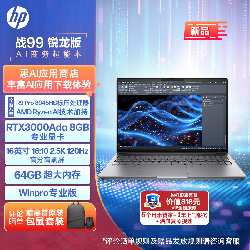 惠普(HP)战99 24款锐龙高性能笔记本AI电脑工作站16英寸R9 Pro-8945HS 64G 2T RTX3000Ada 2.5K屏 Winpro价格:18499.00元!